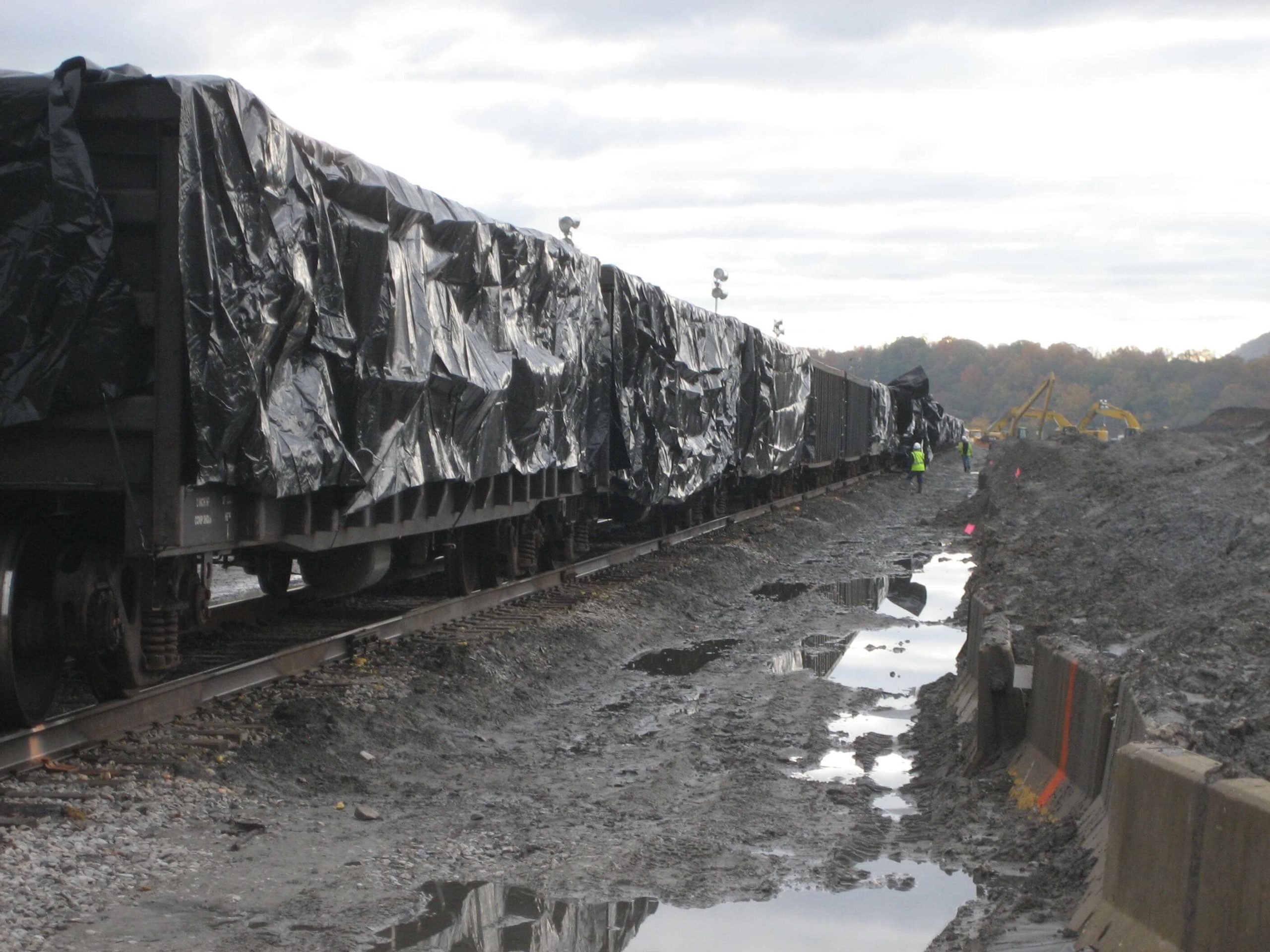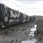 The top of the rail car is tightly closed with a tarp and shipment begins.